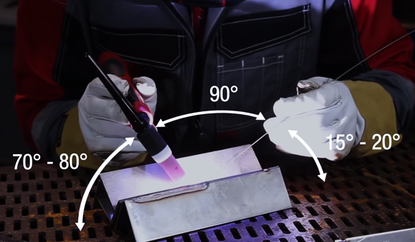 И теперь самое главное – как же правильно вести горелку? Большинство опытных сварщиков проводят сварку справа налево. Во время процесса без присадочного материала электрод стоит расположить практически перпендикулярно свариваемой поверхности. Если присадочный материал присутствует, то достаточно удерживать небольшой угол (15-20 градусов).